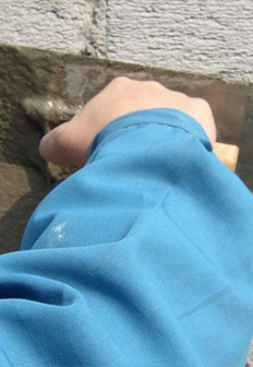 3、造毛:用水泥和界面剂搅拌成浆糊状,用粗糙的滚筒工具涂抹在基层上。